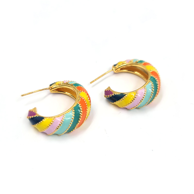 Aros llamativos con diseño en espiral y tonos vibrantes, perfectos para quienes buscan un toque de color y originalidad en su look.