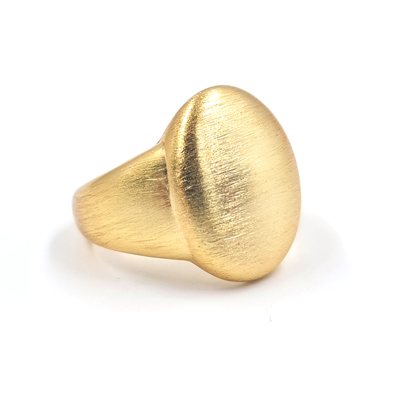 Anillo dorado con una superficie ovalada lisa y brillante.