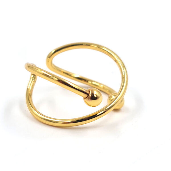 Este anillo dorado presenta un diseño audaz y moderno con dos clavos cruzados, simbolizando resistencia y determinación. Su acabado pulido le otorga un aspecto elegante y versátil