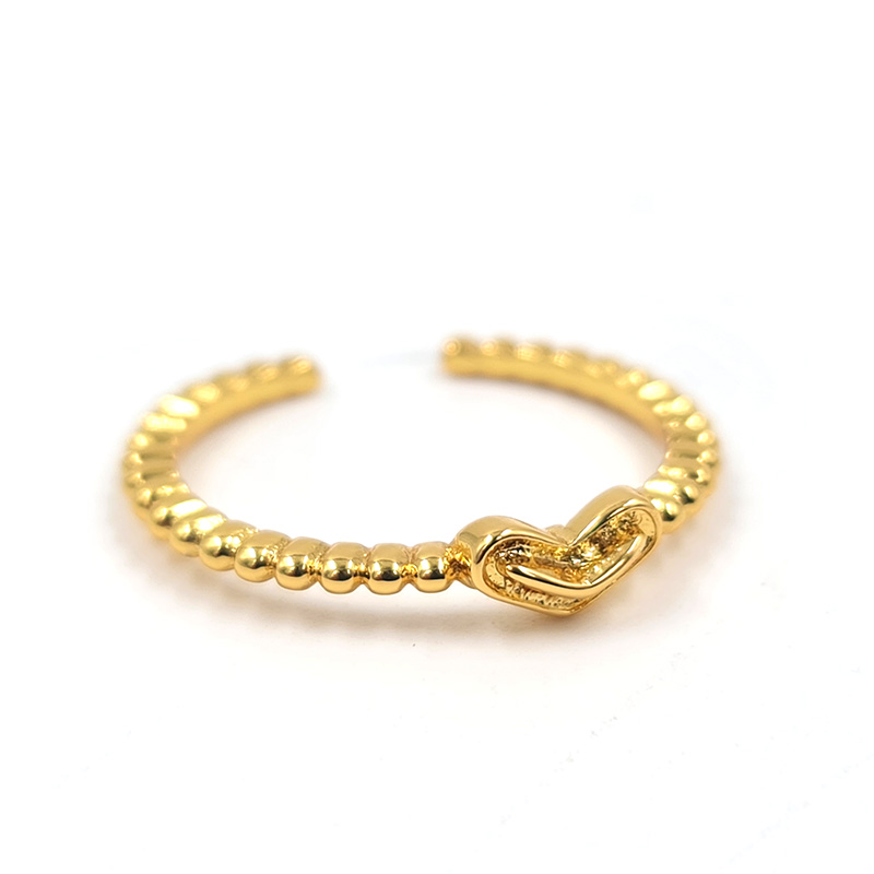 Anillo dorado con un corazón central y detalles trenzados en la banda.