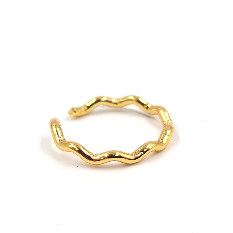 Anillo con forma, como un diseño ondulado. Son ideales para usar, brindando un toque sofisticado y moderno a cualquier look. Su acabado brillante resalta la delicadeza de cada pieza, convirtiéndolos en una opción perfecta