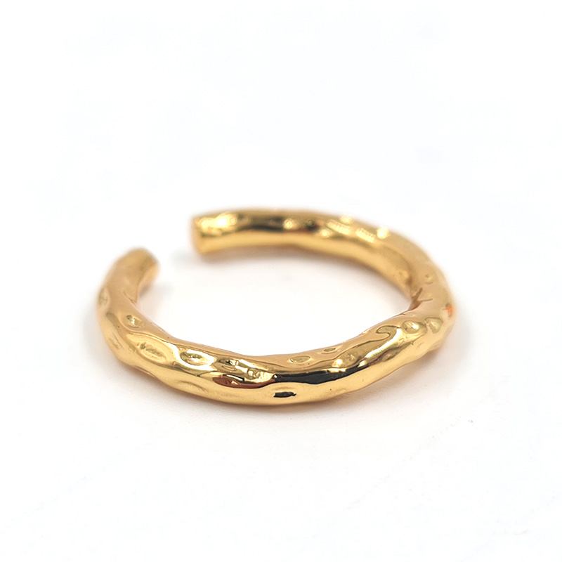 Anillo dorado de diseño orgánico con textura rústica.