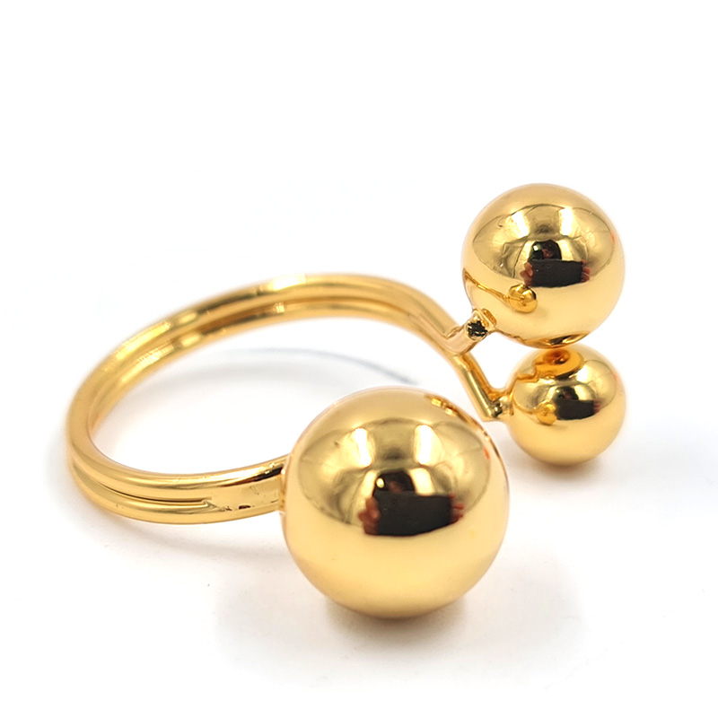 Moderno anillo dorado con diseño de esferas brillantes, ideal para un look contemporáneo y elegante.