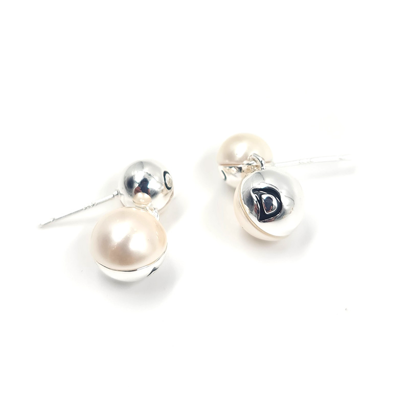 Aretes con perlas y plateado que brindan un estilo moderno y sofisticado.