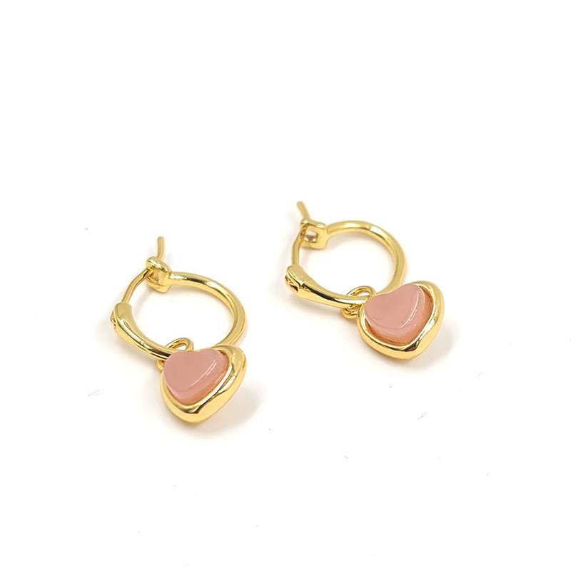 Aros dorados con diseño de corazón y piedra rosada, reflejando delicadeza y sofisticación.