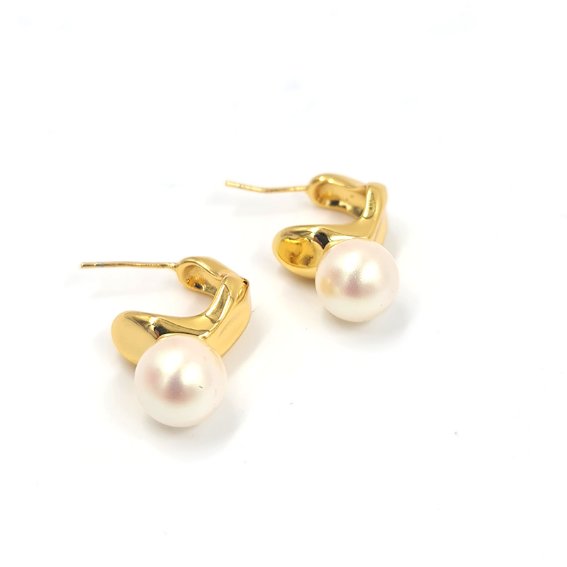 Estos hermosos aretes presentan una composición de perla organizada de forma descendente, unidas por finos detalles dorados que añaden un toque de lujo y distinción. Su diseño liviano y armonioso realza la belleza natural de las perlas