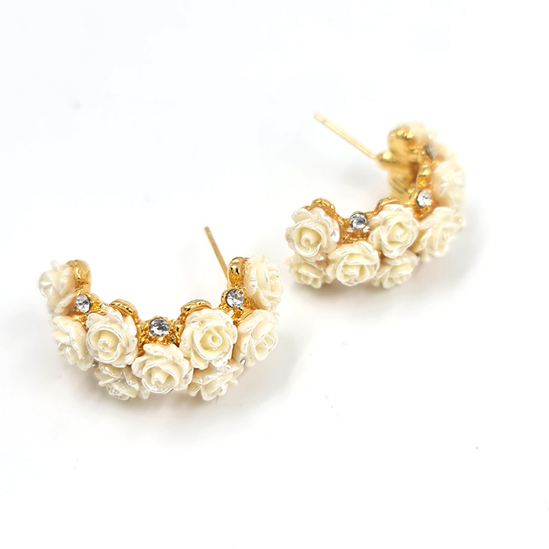 Su diseño está inspirado en la naturaleza, con pequeñas perlas agrupadas en un estilo orgánico que imita la forma de un racimo. Su acabado en dorado resalta la luminosidad de las perlas, convirtiéndolos en un accesorio sofisticado