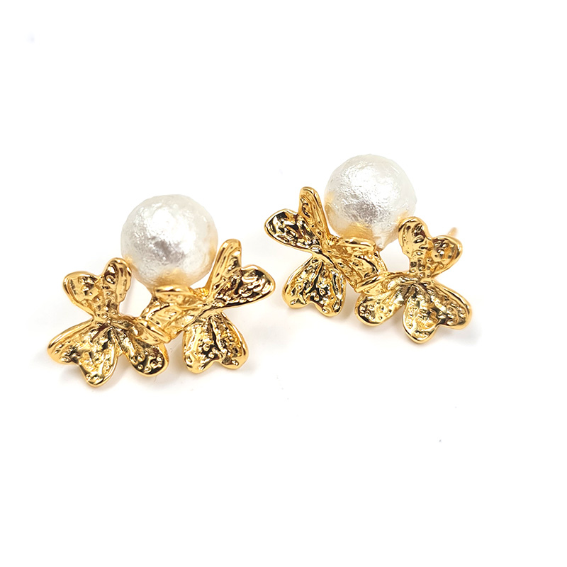 Inspirados en la naturaleza, estos aretes combinan una perla con detalles florales en metal dorado y cristales brillantes.