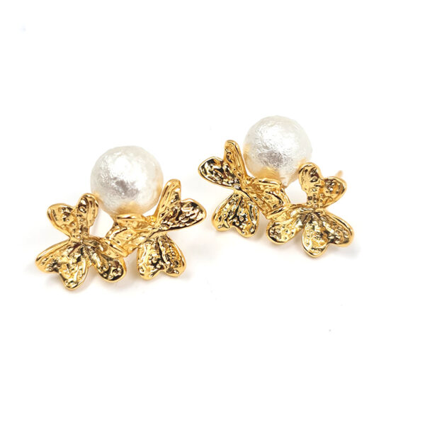 Inspirados en la naturaleza, estos aretes combinan una perla con detalles florales en metal dorado y cristales brillantes.