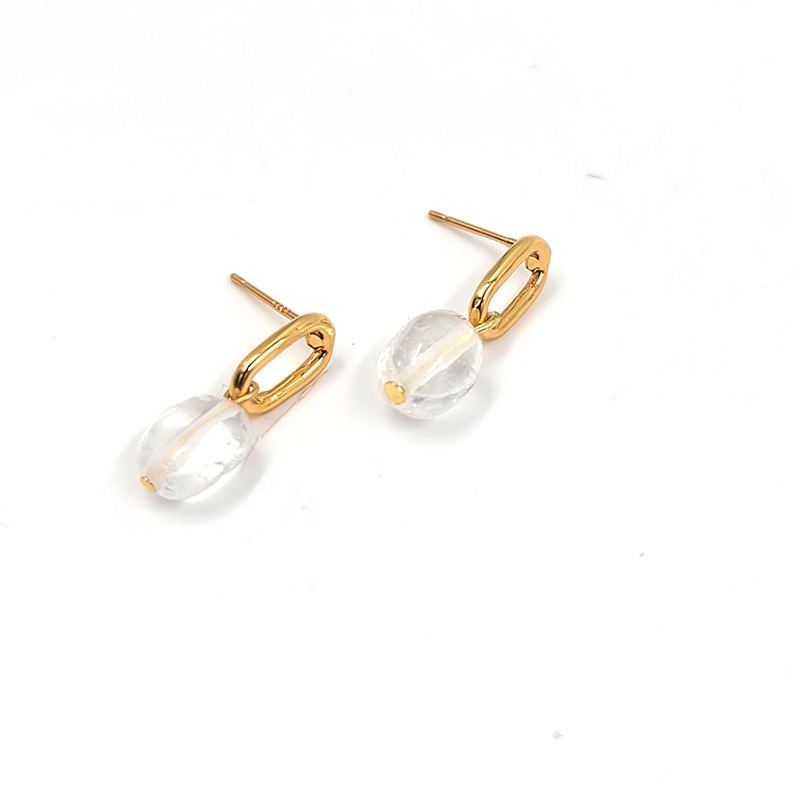 Destacan por su diseño elegante con un cristal transparente que refleja la luz con cada movimiento. Su estructura dorada los convierte en una pieza versátil, perfecta para ocasiones especiales