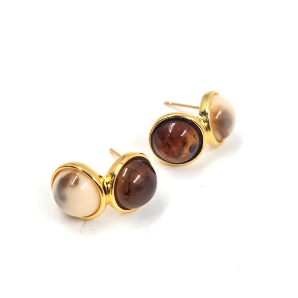 Anillo redondos con dos tonos, combinando el perlado y marrón, para un look sofisticado.