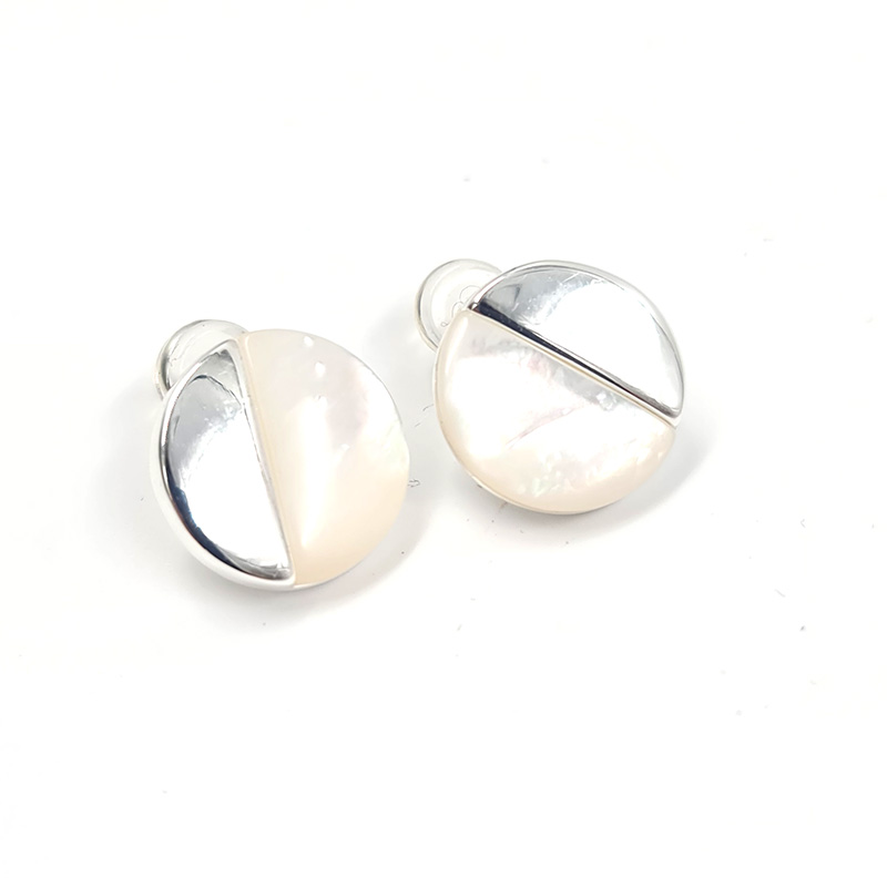 Aros perlado con diseño geométrico y acabado reflectante.