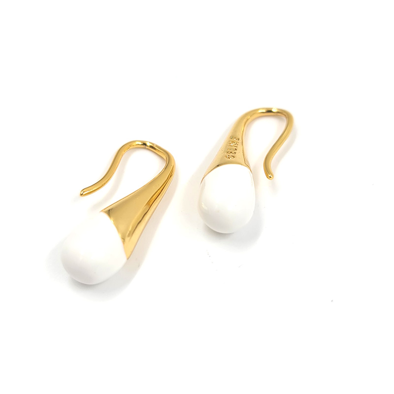 Aro en forma de gota blanca con detalles dorados, elegante y sofisticado.