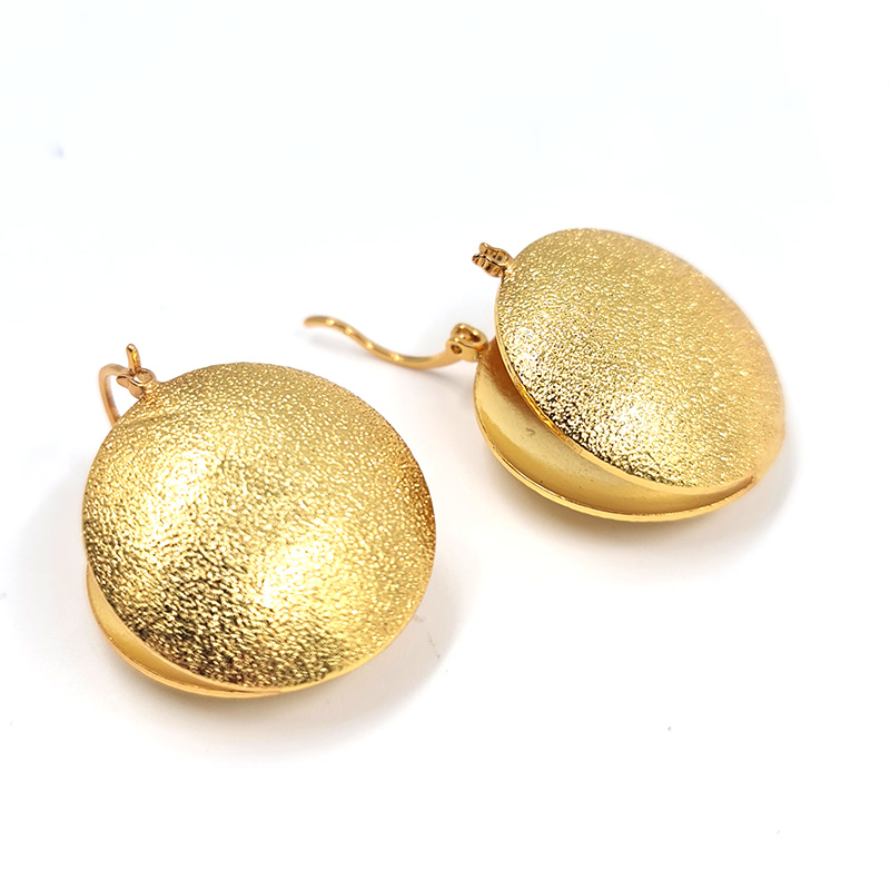 Estos pendientes destacan por su simplicidad y elegancia. Su forma redonda y superficie lisa reflejan la luz de manera sutil, creando un brillo encantador.
