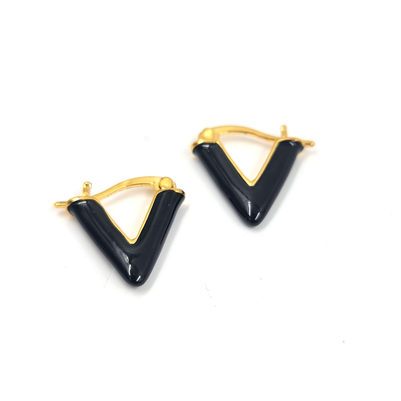 Este aro es una pieza única de diseño contemporáneo, con una estructura angular en tonos negros y dorados que resalta por su estética audaz y sofisticada. Su silueta geométrica aporta un toque de modernidad y minimalismo