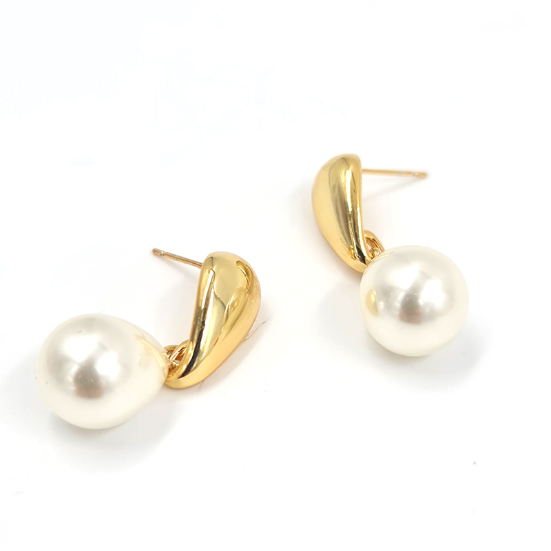 Es una pieza única que combina la elegancia de una perla luminosa con un diseño dorado curvado, creando la sensación de un delicado balance en el aire. Su forma estilizada y su acabado refinado lo convierten en el accesorio perfecto