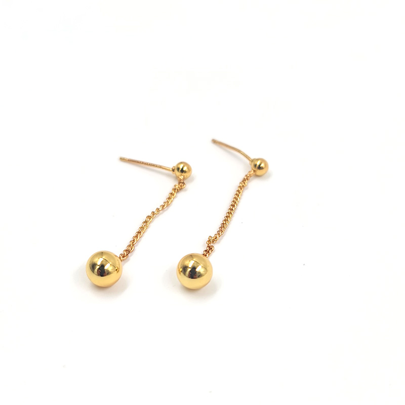 Estos aros presentan un diseño minimalista con una fina cadena dorada que cae de forma elegante, rematada en una pequeña perla . Su longitud estiliza el rostro, añadiendo un toque romántico y femenino. Gracias a su ligereza y a su apariencia delicada