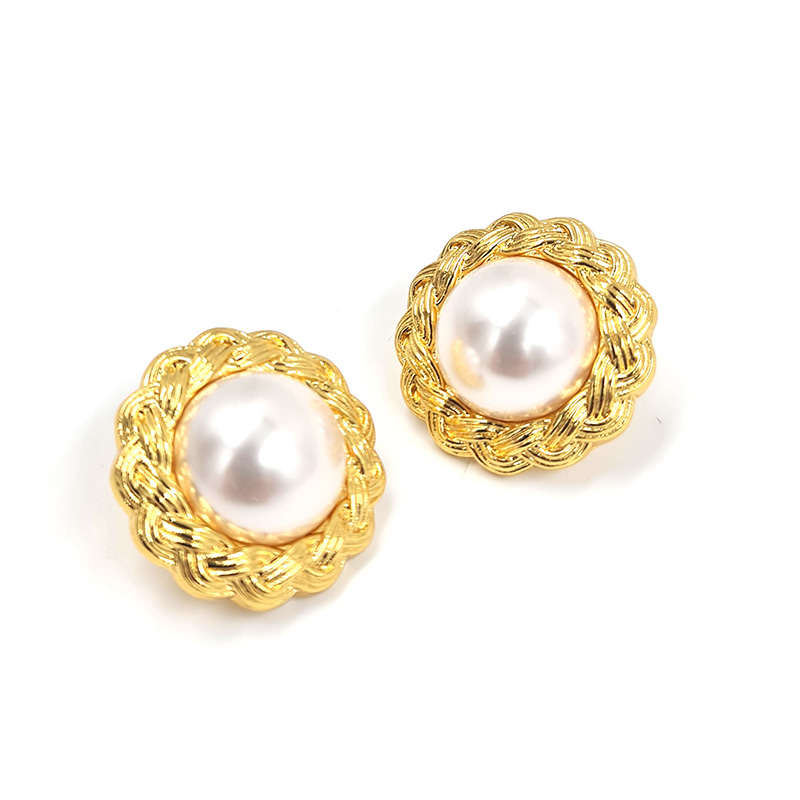 Un diseño clásico con un toque distintivo, estos aros cuentan con una perla blanca en el centro, enmarcada por un elegante trenzado dorado. Su estilo atemporal los hace ideales para eventos formales