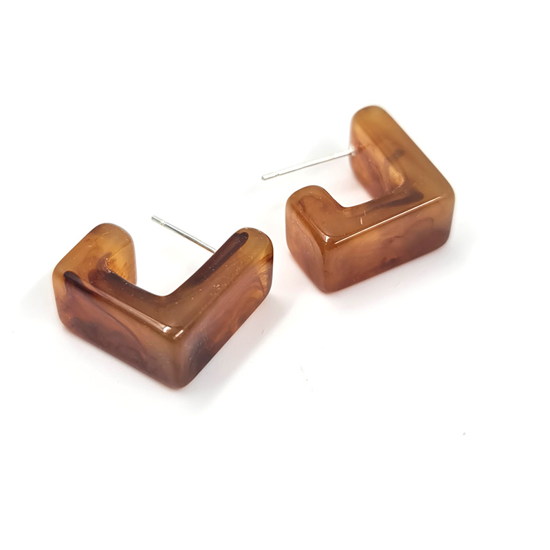 Aros geométricos con un diseño rectangular en acrílico, ideales para un look elegante y vanguardista.