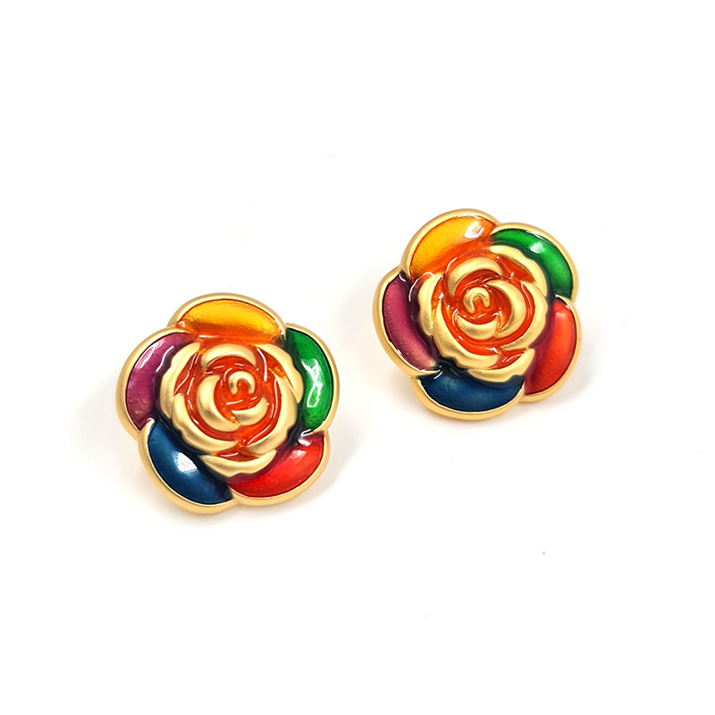 Aros en forma de rosa con detalles en dorado y tonos oscuros, una fusión de elegancia y encanto.