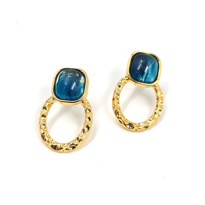 Combinan sofisticación y modernidad en un solo diseño. Su estructura dorada con textura trenzada resalta la belleza de la piedra azul facetada, que aporta un toque de color y distinción.